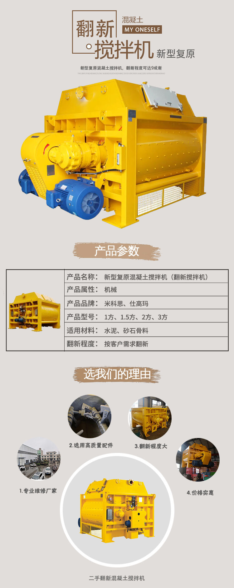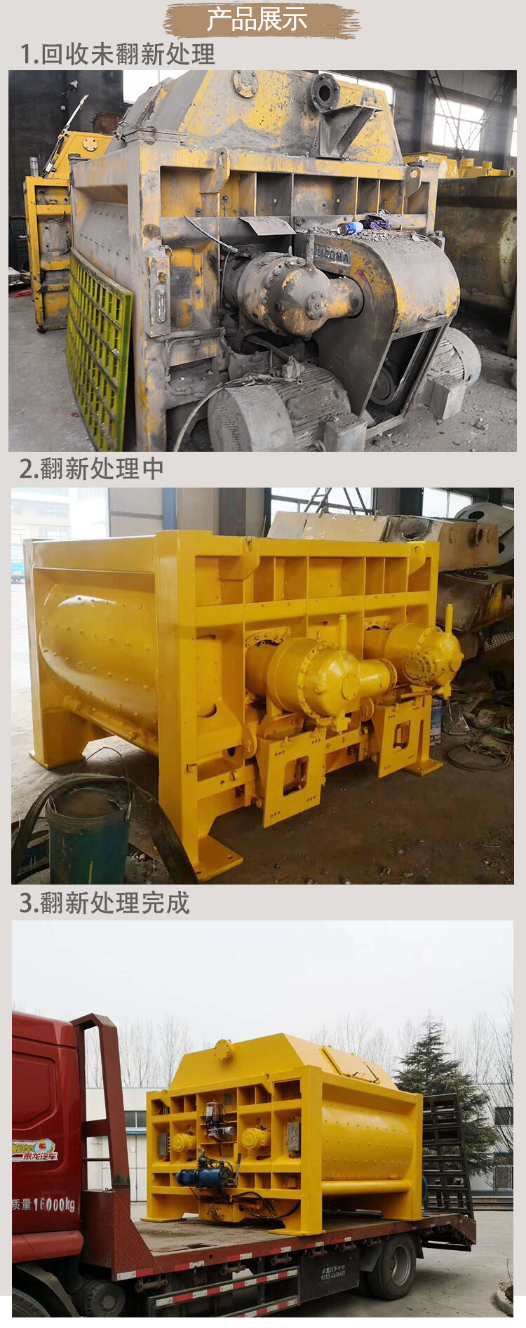 歸屬行業(yè):新型復(fù)原混凝土攪拌機 二手翻新混凝土攪拌機