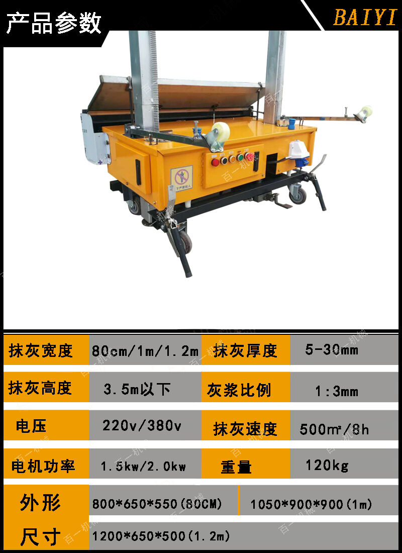 1 自動(dòng)抹灰、自動(dòng)升降、一次性成型,厚薄可調(diào),無(wú)落地灰。
