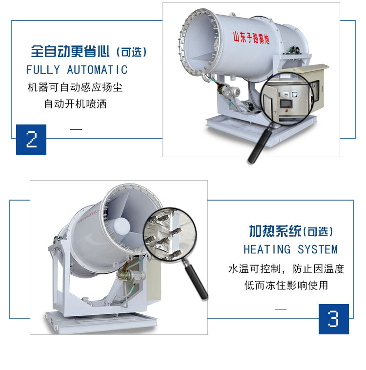 2.霧炮機(jī)是全自動的還是手動型的,如果是全自動的價格肯定會高出一些,全自動霧炮機(jī)可以實現(xiàn)遠(yuǎn)程遙控,配備觸摸屏,遙控器,粉塵傳感器,能定時定量噴霧,