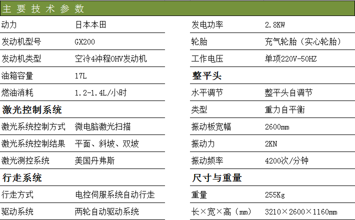 奧力德混凝土激光整平機在施工中的優(yōu)點: 平整度及水平度質(zhì)量更高——可達到激光級精度的地面標高,地面平整度和水平度是手工整平作業(yè)方式的2-3 倍,混凝土密實度提高20%以上,且適合干硬性混凝土、纖維混凝土及大骨料混凝土。 減少分倉縫,可做到無分倉縫施工。大面積混凝土地面上分倉縫由于養(yǎng)護及模板支護原因會產(chǎn)生沿縫破損等缺陷,采用激光整平后切縫技術(shù)可以避免這些問題。 施工速度更快——作業(yè)工效提高100-300%(每小時可完成300平方米的鋪注工作,平均每天可完成2000-3500 平方米),并減少人工30%以上,特別適合工期要求緊、鋪注面積大、質(zhì)量要求高的工程項目。 地面整體性更好——非常容易實現(xiàn)大面積整體鋪注,這種整體鋪注技術(shù)一方面可以避免地坪分層澆注帶來的易空鼓、易開裂等問題,另一方面可以減少大量的施工縫,使地面的整體性更好。這是采用其它施工工藝不易做到的。 可減少地面的后期維護費用——由于大面積整體鋪注可減少3 倍以上的施工縫——而施工縫是很容易受輪載作用而產(chǎn)生破損的,從而可減少地面的后期維護費用。