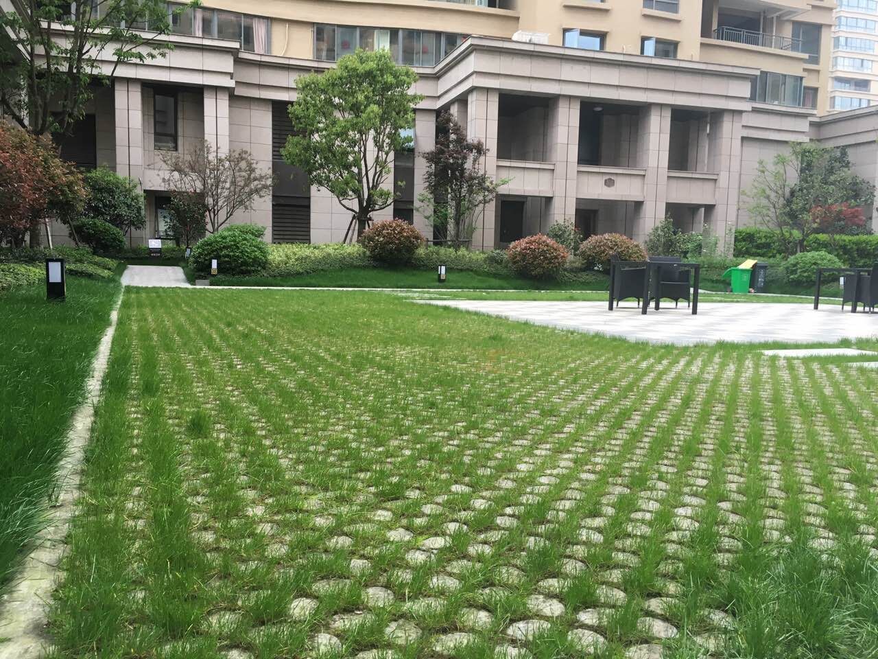現(xiàn)澆生態(tài)植草地坪系統(tǒng)是地面綠化與硬化的完美結合,在綜合性能上全面顯著優(yōu)于傳統(tǒng)的植草磚系統(tǒng)。生態(tài)植草地坪系統(tǒng)在水土保持、綠化效果及提高承載方面具有獨特的效果。生態(tài)植草地坪是一種混凝土現(xiàn)澆并連續(xù)孔質(zhì)的植草系統(tǒng),并可根據(jù)承載要求的不同而設計混凝土配比及配筋。具有良好的結構整體性、草皮連續(xù)性和透水透氣性,可以在實現(xiàn)高綠化率的同時滿足各種交通承載的要求,形成真正意義上的綠色通道。