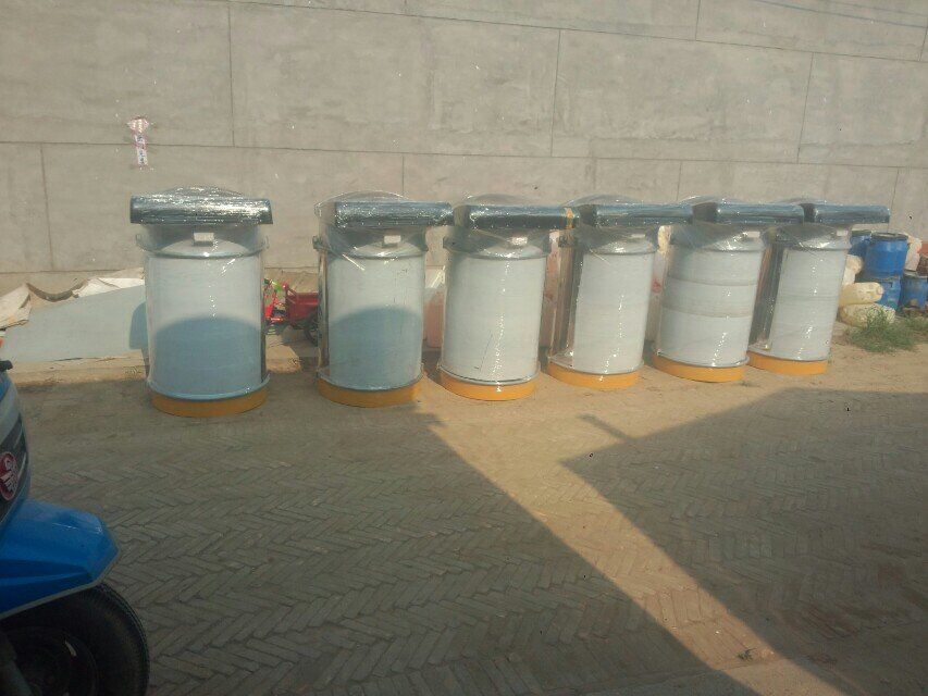倉(cāng)頂單機(jī)除塵器的結(jié)構(gòu):倉(cāng)頂單機(jī)除塵器是一種圓形可拆的金屬濾筒,底板上有14個(gè)嵌入圓形孔,它設(shè)有14個(gè)濾芯,扎緊在上端1個(gè)振動(dòng)器的吊架上,定時(shí)震動(dòng),使濾芯阻留下來(lái)的灰塵降落在倉(cāng)內(nèi)。