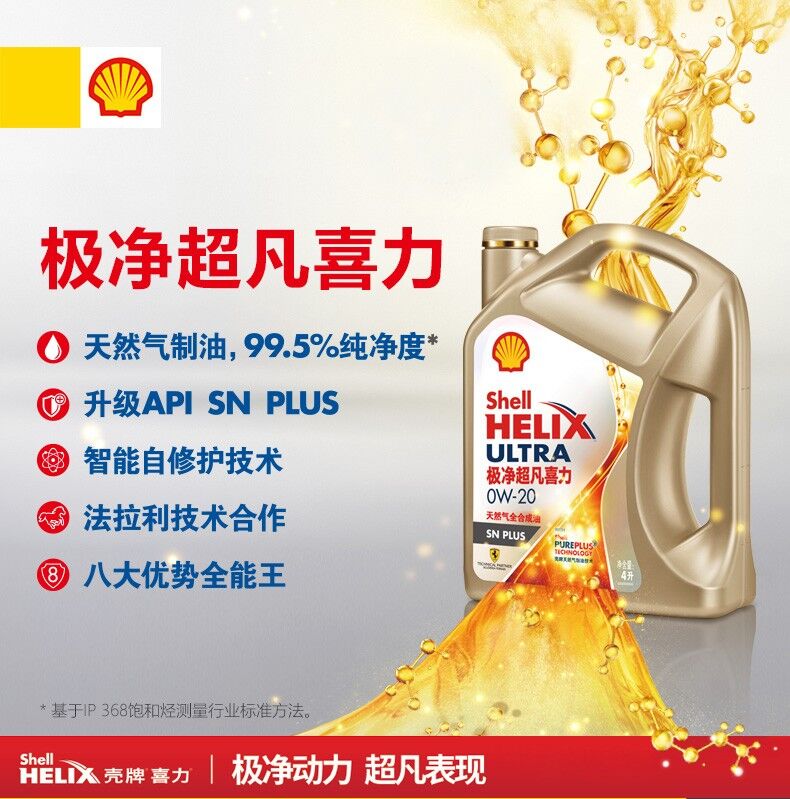 歸屬行業(yè):殼牌(Shell)新升級 金裝極凈超凡喜力天然氣全合成機(jī)油Helix Ultra 0W-40 SN PLUS級 6L組合裝