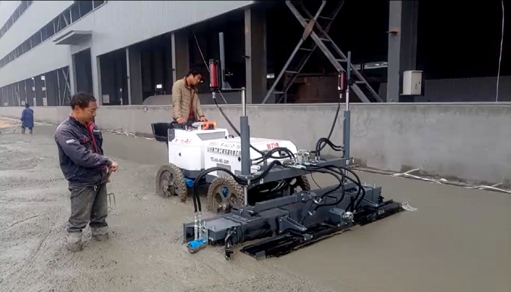 由刮板、振動器、振動板、絞龍等部件組成,將攪拌、找平、震平、振搗,等多道工序整合到一起,由機器一次性完成。提高效率,節(jié)省人工。