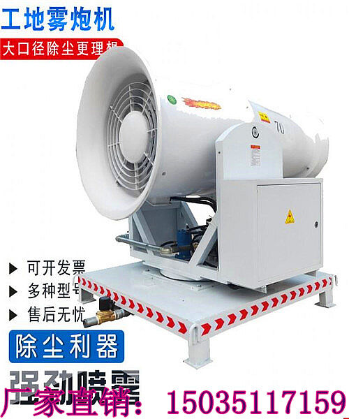 霧炮機(jī)功力強(qiáng)、射程遠(yuǎn)、覆蓋范圍廣、可以實(shí)現(xiàn)精量噴霧;工作效率高、噴霧速度快;對容易引起塵埃的堆場噴水除塵時(shí),噴出的霧粒細(xì)小、與飄起的塵埃接觸時(shí),形成一 種潮濕霧狀體,能快速將塵埃抑制降沉;配套動力靈活,既可用三相380V的市電,也可配套柴油發(fā)電機(jī)組供電;可固定安裝在混凝土澆筑的平臺上,也可配套柴 油發(fā)電機(jī)組供電安裝在運(yùn)輸車輛上;操作靈活,使用安全可靠,遙控和人工控制操作,可隨意控制調(diào)節(jié)水平旋轉(zhuǎn)噴霧角度;耗水量其它抑塵噴灑設(shè)備可節(jié)約 ~(噴槍、灑水機(jī)車),且水霧覆蓋粉塵面積遠(yuǎn)遠(yuǎn)大于其它抑塵噴灑設(shè)備。
