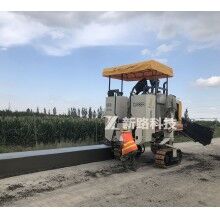 該設(shè)備采用三履帶行走驅(qū)動,水泥混凝土經(jīng)過輸料裝置,進入成型模具,然后通過振動棒振動和模具擠壓,一次攤鋪成型用戶需要的水泥結(jié)構(gòu)物。通過更換模具及對車輛和模具狀態(tài)的精確調(diào)整和控制可以實現(xiàn)各類路緣石、硬路肩、防撞墻、公路中央分隔帶、水溝/匯水槽/排水槽、下水道及安全環(huán)島等不同輪廓水泥混凝土結(jié)構(gòu)物的精準(zhǔn)鋪筑。