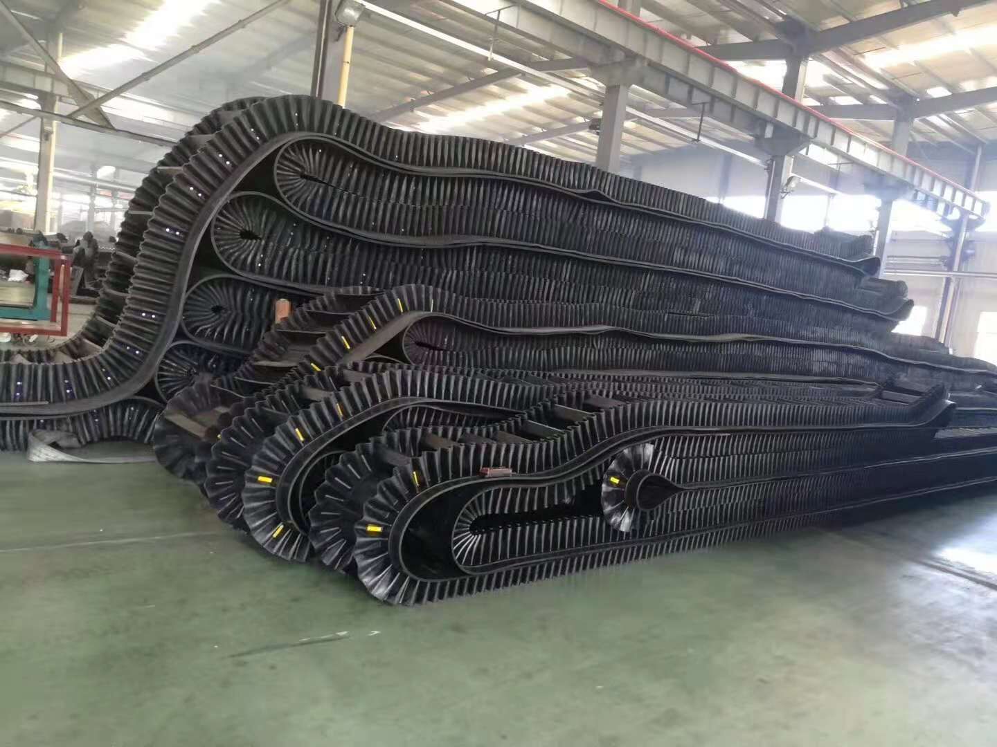 2 大傾角輸送帶直接不需要打孔,也不需要借助外力,而是借助本身的結(jié)構(gòu)就可以完成物料的由低處向高處的物料輸送。大傾角輸送帶的基帶和普通輸送帶的基帶是一樣的,也是平皮帶,這個(gè)平皮帶的生產(chǎn),經(jīng)過煉膠,硫化等等一系列的工序生產(chǎn)而成?;鶐У纳a(chǎn)對(duì)于大傾角擋邊帶來說也是一個(gè)很重要的步驟。在這一步的生產(chǎn)里,我們需要根據(jù)客戶的實(shí)際需求,選擇相對(duì)應(yīng)的拉力布層,現(xiàn)在無論是普通棉帆布布層,尼龍布層,聚酯布層,鋼絲繩芯布層,都可以由您進(jìn)行選擇?,F(xiàn)在基本來說,普棉布層的拉力為56,尼龍,聚酯布層的拉力為100-400,鋼絲繩芯大傾角擋邊膠帶的拉力為st600-st5600。不同的拉力可以為您運(yùn)輸不同的物料。