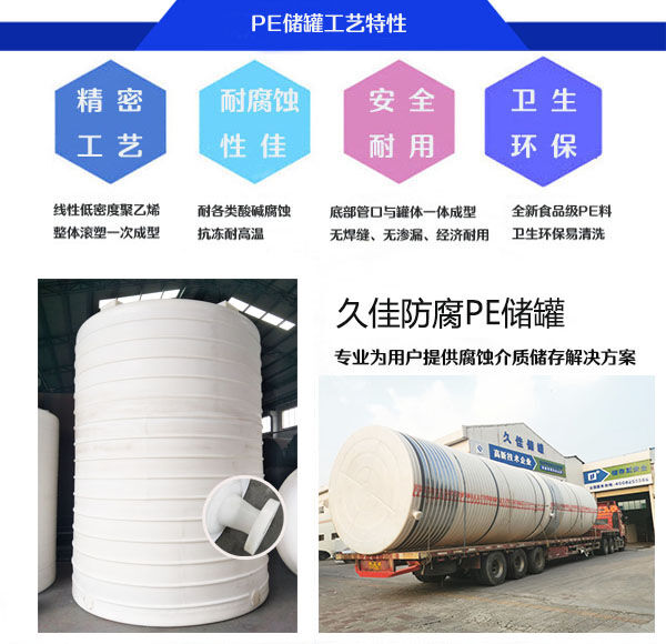 含油廢水浸入土壤孔隙間形成油膜,產(chǎn)生堵塞作用,致使空氣、水分及肥料均不能滲入土中,破壞土層結(jié)構(gòu),不利于農(nóng)作物的生長(zhǎng),甚至使農(nóng)作物枯死,由于其特殊化學(xué)性質(zhì),推薦使用久佳防腐牌PE含油廢水儲(chǔ)罐。久佳防腐的PE儲(chǔ)罐能很好儲(chǔ)存含油廢水,自主研發(fā)管口一體成型專利,創(chuàng)新管口一體成型旋轉(zhuǎn)滾塑工藝,具有防滲漏、防污染、耐各種酸堿、防腐蝕、壽命長(zhǎng)等優(yōu)點(diǎn)。提高了罐體和下部管口之間的機(jī)械性能和承壓強(qiáng)度,優(yōu)化了產(chǎn)品結(jié)構(gòu)。