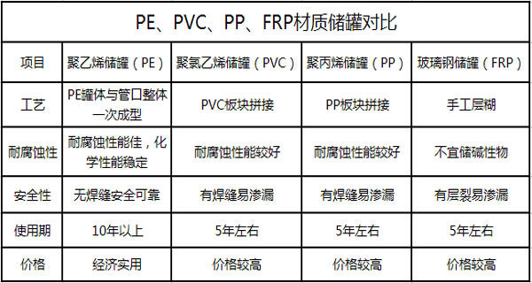 特點:所用材質(zhì)為韓國進口聚乙烯(PE)滾塑原料,儲罐一次成型,內(nèi)外光滑,無焊接縫、不滲漏、具有良好的衛(wèi)生性與抗紫外線能力,耐酸堿、耐腐蝕、易清洗、不易老化、抗沖擊。它可以盛裝在常溫下無機酸、堿、鹽等大部分物質(zhì)及有機物,耐熱耐凍性佳,在-5℃—+60℃均可使用。