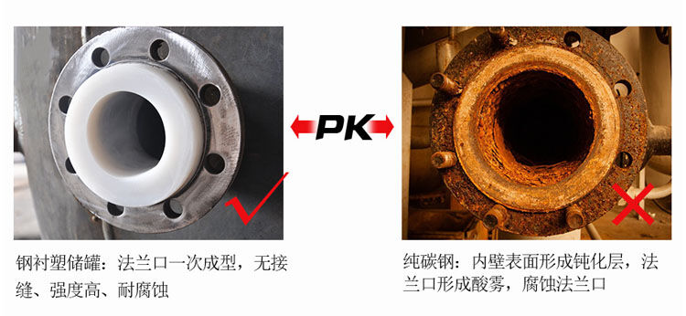 產(chǎn)品具有無焊接縫、不滲漏、無毒性、抗老化、抗沖擊、耐腐蝕、壽命長、符合衛(wèi)生標(biāo)準(zhǔn)等優(yōu)點(diǎn)。它彌補(bǔ)了全塑滾塑儲(chǔ)罐剛性強(qiáng)度差,不耐壓,耐溫差的缺點(diǎn)。產(chǎn)品內(nèi)襯面平整、光滑、堅(jiān)固,與傳統(tǒng)的鋼襯塑料板儲(chǔ)槽、鋼襯橡膠儲(chǔ)罐、鋼襯玻璃鋼貯槽相比,具有更良好的耐腐蝕、不滲漏、不剝離、耐磨損、可耐一定壓力、可耐較高溫度、壽命更長等優(yōu)點(diǎn),是儲(chǔ)存腐蝕液體的理想容器,也是一種極為優(yōu)異的耐腐蝕儲(chǔ)罐。