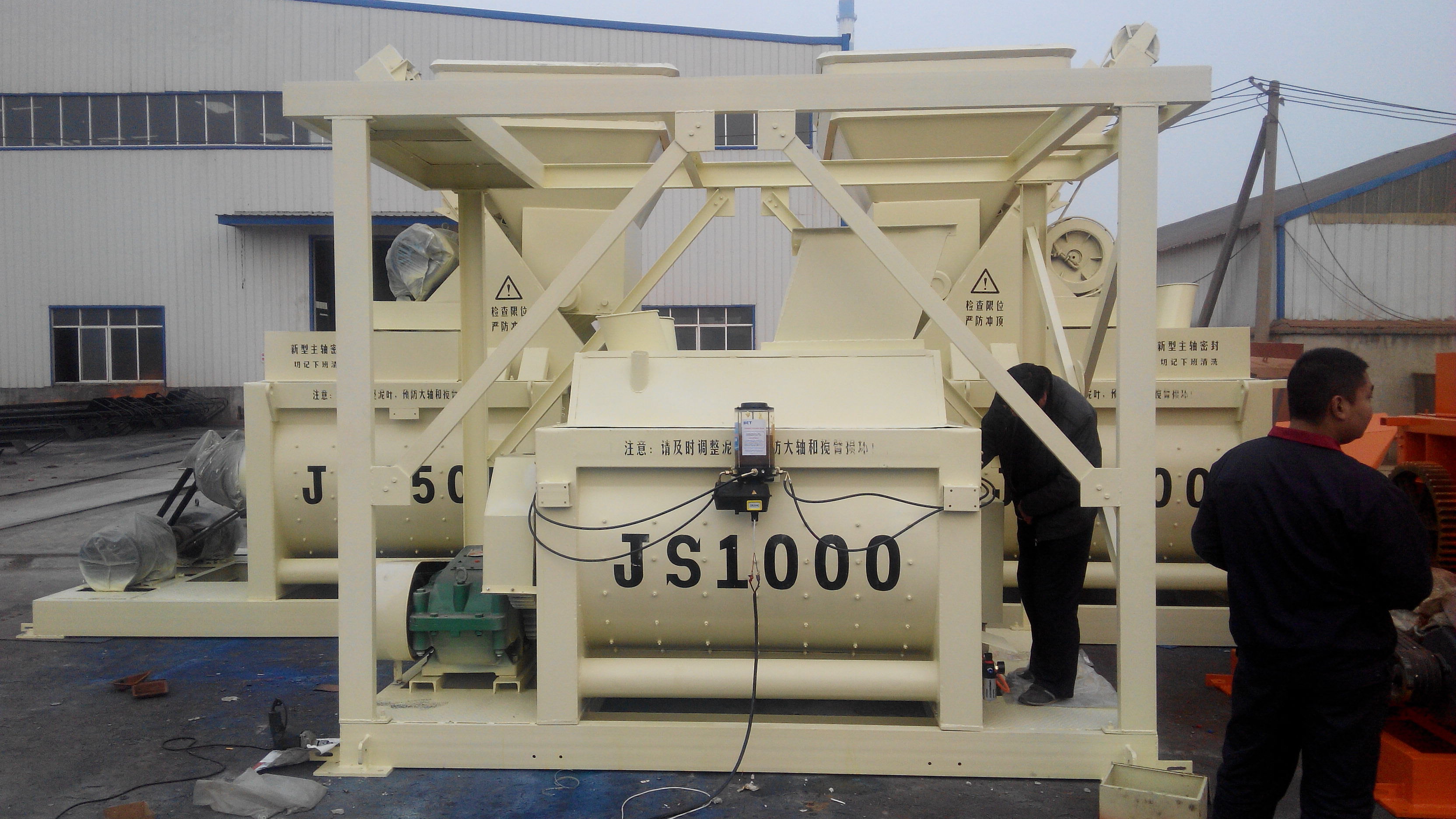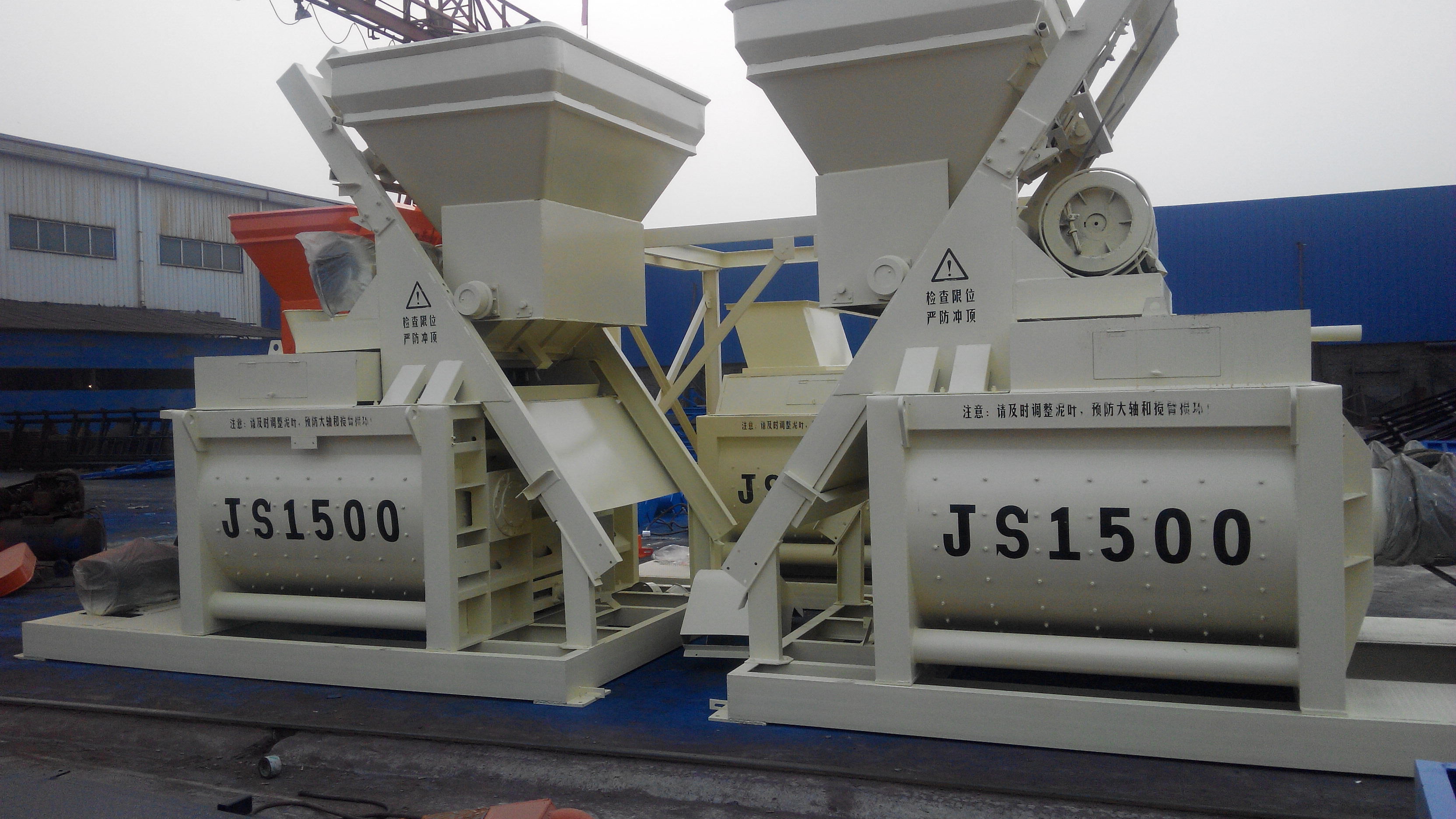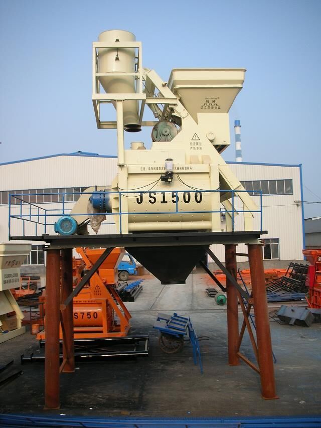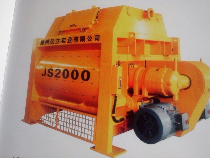混凝土攪拌機 億立JS1500型攪拌機價格圖片 混凝土攪拌機河南供應商。鄭州億立實業(yè)有限公司地址:河南省滎陽市建設路西段,聯(lián)系電話:15237150118,15237102219,企業(yè)QQ:2328666164。本機屬于雙臥軸強制式混凝土攪拌機,可攪拌干硬性,塑性、流動性,輕骨料等混凝土以及各種沙漿。筒內(nèi)鑲有高錳耐磨鑄鋼襯板及攪拌葉片,具有堅固耐用,更換方便等特點,本機與配料機組合,即成為各種型號攪拌站,適用各類大,中,型預制構件廠及各種建筑工地、道路、橋梁、機場、隧道等工程。 本機設計合理,結構緊湊,操作方便,具有攪拌質量好,生產(chǎn)效率高,能耗低,噪音小,易損件壽命長等優(yōu)點。 用戶可自配翻斗車、自卸車、攪拌車使用,同時還可根據(jù)用戶特殊要求進行改制,以滿足用戶需要。