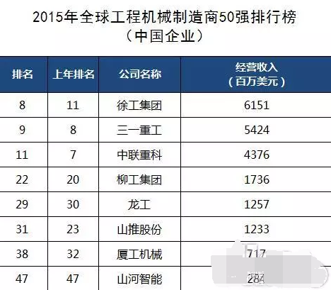 2015年全球工程機(jī)械制造商50強(qiáng)排行榜中國(guó)企業(yè)榜單